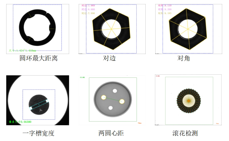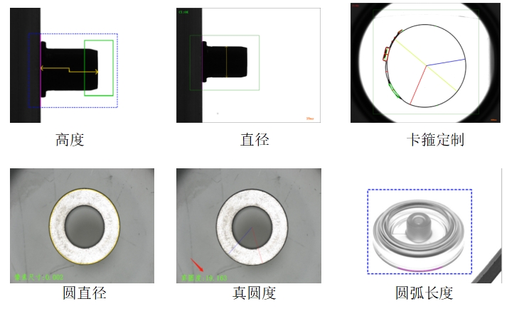 2.尺寸检测:检测圆尺寸大小、零件高度、长度、任意两端距离,间距、平整度,