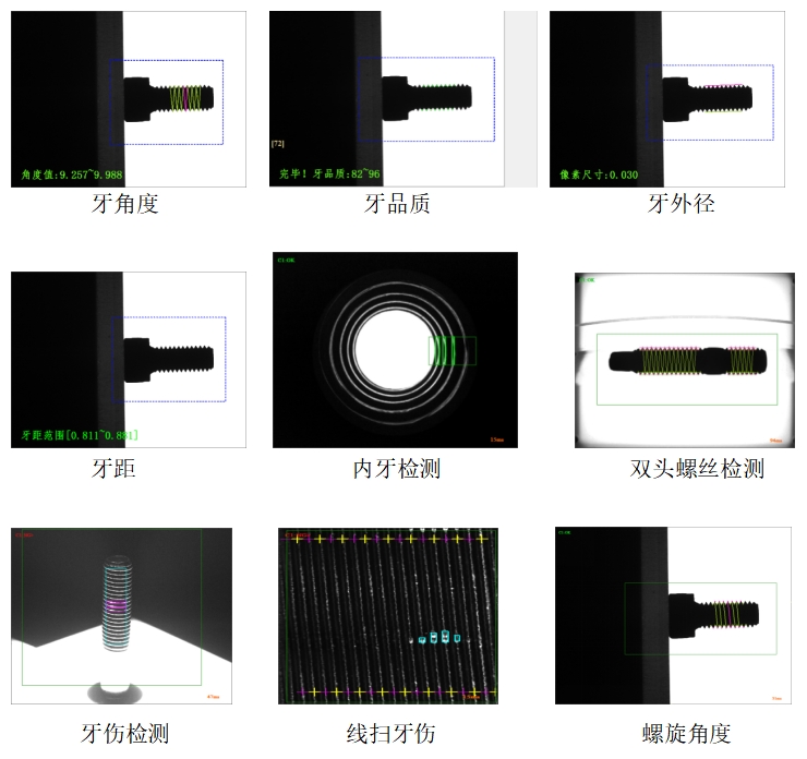 5.螺丝检测:检测牙外径、牙角度、牙个数、牙伤